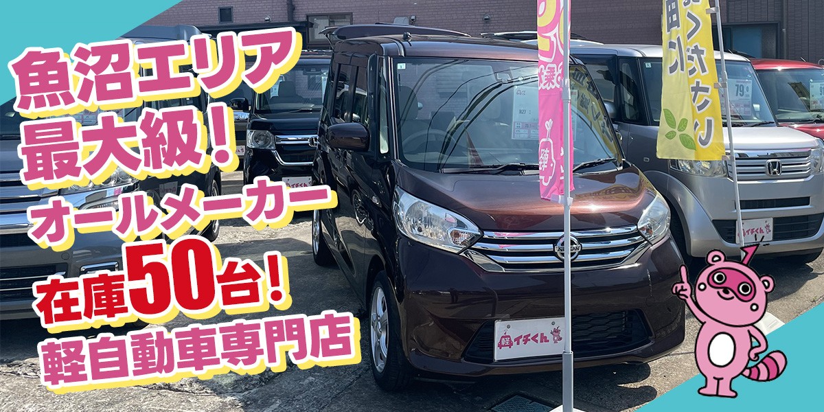 目指すは地域No.1店。高品質な軽自動車を中心に、在庫数は新潟南魚沼最大の50台!品質と価格は徹底追求いたします。